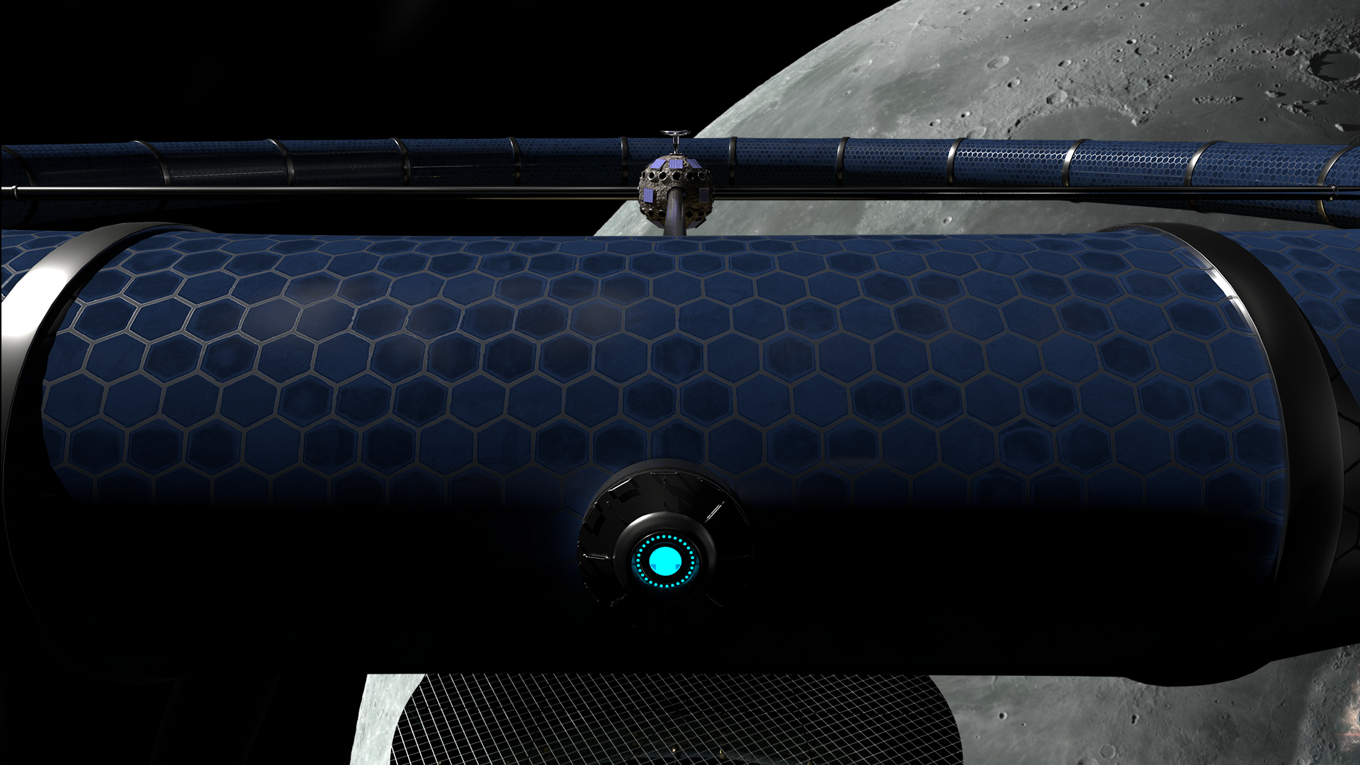 Once the photovoltaic power elements are activated, the electrical power will be fed to the four ion electrical propulsion units positioned equidistantly along the torus. These moveable thrusters will maintain the precise rotational spin and attitude control of the GE⊕-LPS while also providing thrust for transferring the GE⊕-LPS to other orbital locations. As the Moon is within Earth’s Hill Sphere and the presence of mass concentrations or “mascons” below the lunar surface, lunar orbits are inherently unstable and constant orbital attitude adjustments will be required. The rotation will enable a centrifugal artificial gravitational environment for the habitat which will provide comfort and health attributes to the residents, workers and tourists by providing adaptation to either lunar-G or Earth-G environments.