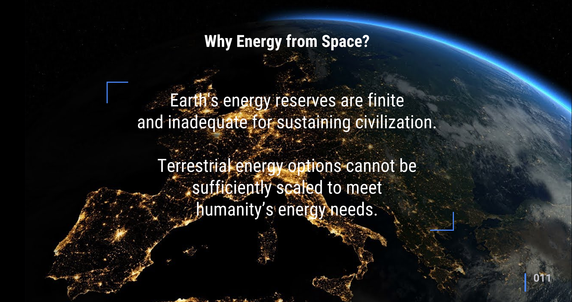 Humanity is facing an imminent Energy Dilemma in that the limited proven reserves of fossil fuels could reach exhaustion levels at mid-century. In addition, none of the current alternative terrestrial energy options – nuclear – wind - ground solar (PV) – can be sufficiently scaled to achieve the goal of divesting from fossil fuels by the year 2050 as is being called for by the United Nations, the European Union and numerous organizations to address the Climate Emergency.